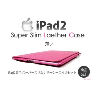 【ipad2専用】スーパースリムレザーケース ピンク 4点セット
